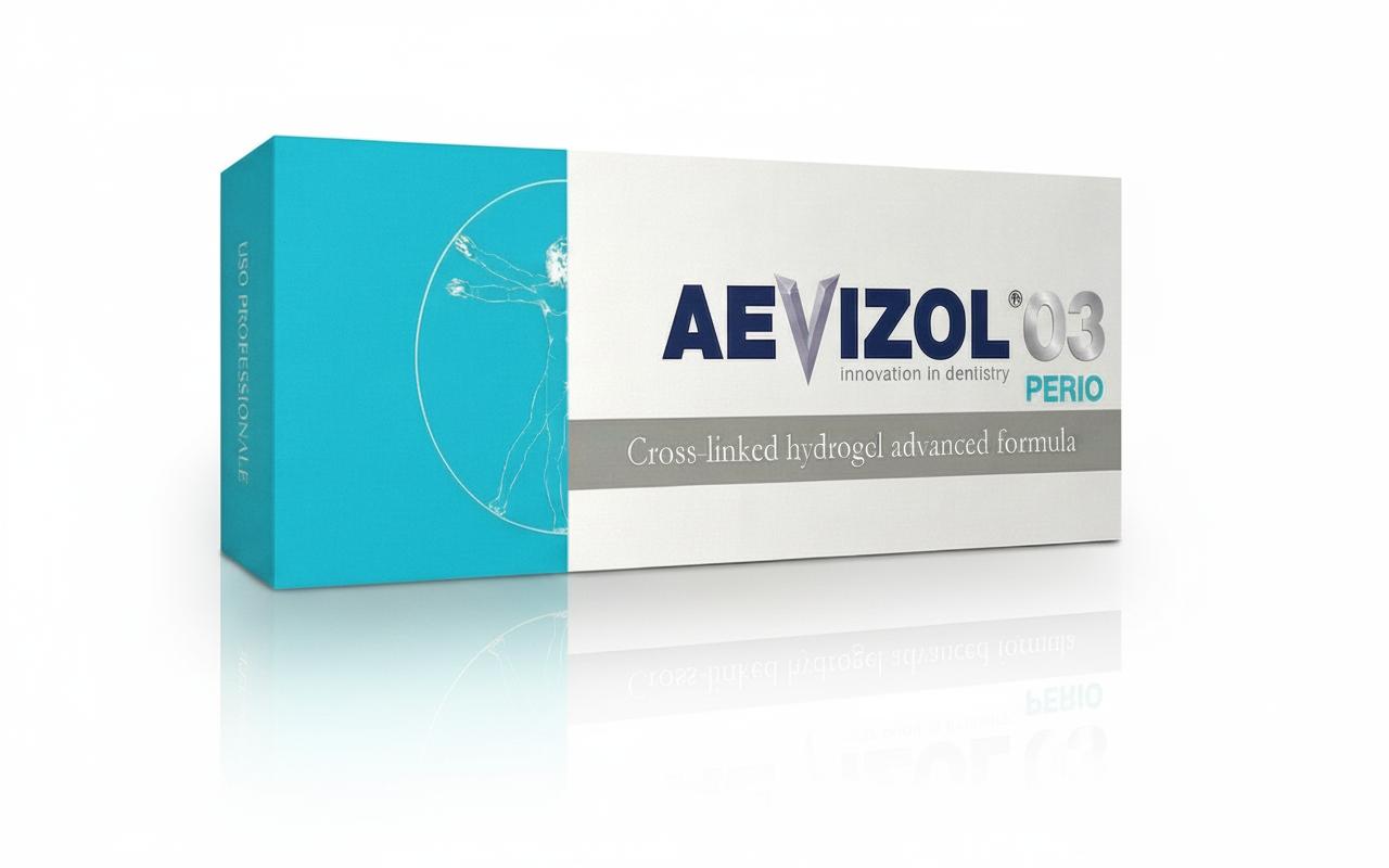 E’ il nuovo idrogel ozonizzato di Dentatech con olio d’oliva, collagene, acido ialuronico e idrossiapatite. Aevizol®O3 Perio è un valido adiuvante professionale la terapia parodontale e perimplantare. Inserito nella tasca o nel sito da trattare, svolge una azione battericida ed un importante effetto barriera. E’ idrofilo.